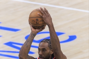 神挡杀神!伦纳德连中三分后两罚都有 砍下个人本场第40分GIF-伦纳德三分GIF-继续轰