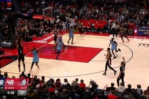 队友可太喜欢了!克林根前场板助攻格兰特底角命中三分GIF-克林根前场板助攻格兰特三分