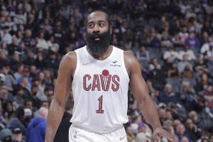 骑士生涯首球!哈登弧顶单挑国王新秀考德威尔 撤步三分稳稳落袋哈登骑士生涯首分!三分落袋!