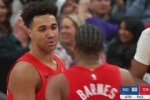 活力十足!TJD再度补篮得手 猛龙领先20分打停步行者GIF-TJD再补篮