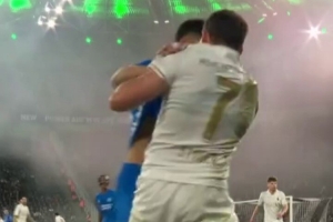 火药味!门兴vs药厂比赛中斯托格与帕拉西奥斯冲突,各染一黄体育资讯2月8日讯德甲第21轮比赛,门兴主场1-1战平勒沃库森。下半场门兴中场斯托格与勒沃库森中场帕拉西奥斯发生冲突,互相拉拽球衣,随后两队球员纷纷冲过来对峙,斯托格、帕拉西奥斯因此被出示黄牌。